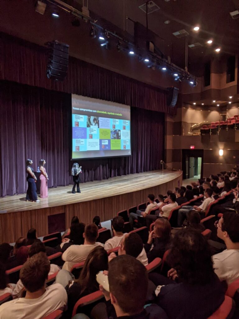 A palestra foi resultado de um alinhamento estratégico entre a Instituição e a equipe de Recursos Humanos da EY, com o objetivo de aproximar os alunos das práticas e expectativas do ambiente corporativo, além de apresentar possibilidades concretas de inserção e desenvolvimento profissional.