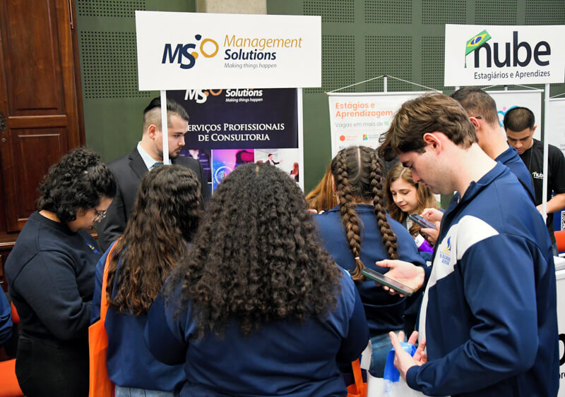 Durante o mesmo dia, a feira também promoveu uma ação de orientação à comunidade, oferecendo apoio para a elaboração de currículos e dicas de carreira. Outro destaque foi o bate-papo com quatro estagiárias da instituição, que compartilharam suas vivências e aprendizados durante o período de estágio. A presença de ex-alunas já efetivadas em suas empresas reforçou a importância da formação acadêmica aliada à experiência prática.