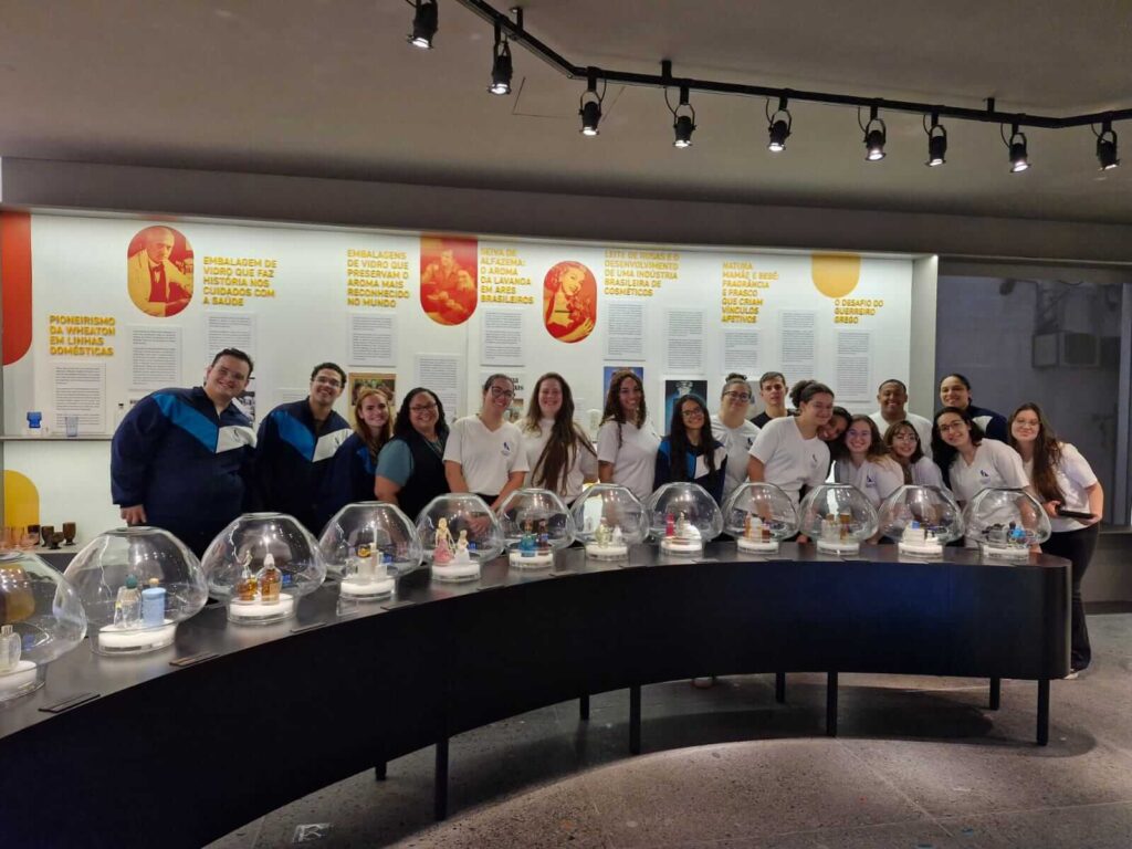 Outro momento importante da visita técnica à Wheaton foi a passagem pelo Museu do Vidro, localizado dentro da própria empresa. O espaço reúne informações históricas, explicações sobre a evolução do material e uma exposição diversificada de embalagens. A experiência no museu complementou o aprendizado técnico, oferecendo uma perspectiva mais ampla sobre o desenvolvimento da indústria vidreira e sua importância para diferentes segmentos produtivos.